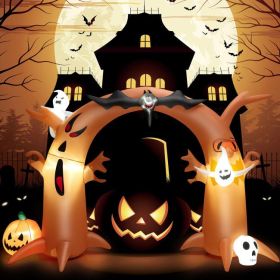 8 Feet Tall Halloween Inflatable Dead Tree Archway Decor with Bat Ghosts and LED Lights