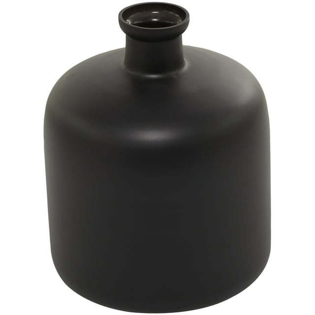 The Novogratz 12" Black Glass Vase is a unique addition to your stylish home. Throw some freshly cut flowers into this decorative modern vase or use it as an accent piece on your coffee table or console, paired with books and an abstract sculpture. Designed with felt or rubber stoppers at the base that prevent scratching furniture and table tops, as well as sliding around. This item ships in 1 carton. Suitable for indoor use only. This item ships fully assembled in one piece. Made in India. This is a single black colored vase. Modern style. Vase has a 1 in mouth opening.