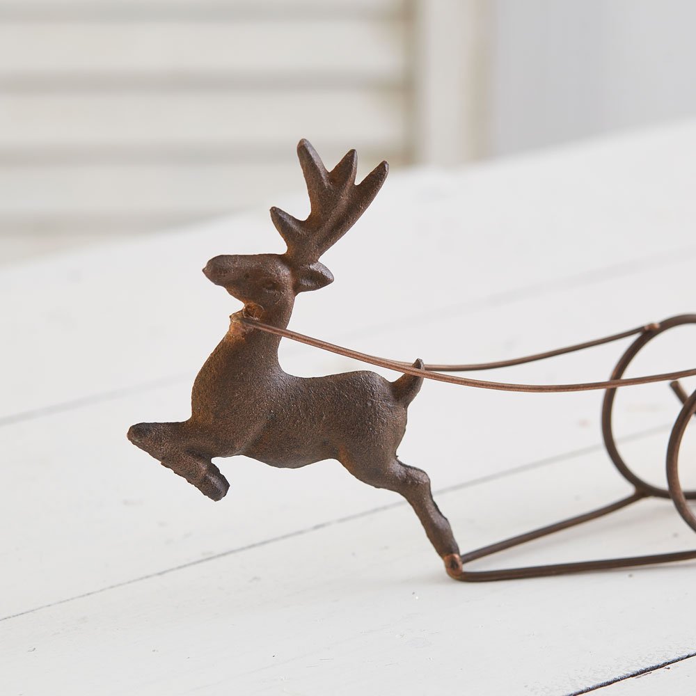 What makes Christmas more complete than Santa's sleigh and reindeer? This unique take on his sleigh features four votive candle holders and a reindeer at its lead. The item has an antique copper finish that will be easy to add in with any holiday décor.