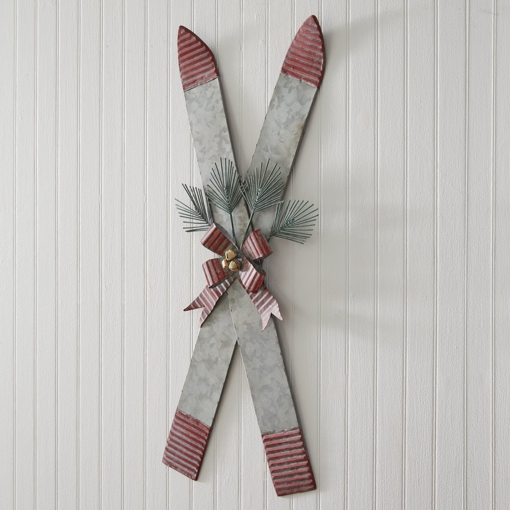 Make your home feel like a lodge this holiday season with our Galvanized Skis Wall Decor. This sign is fashioned of metal. To hang, use its two keyhole hangers.